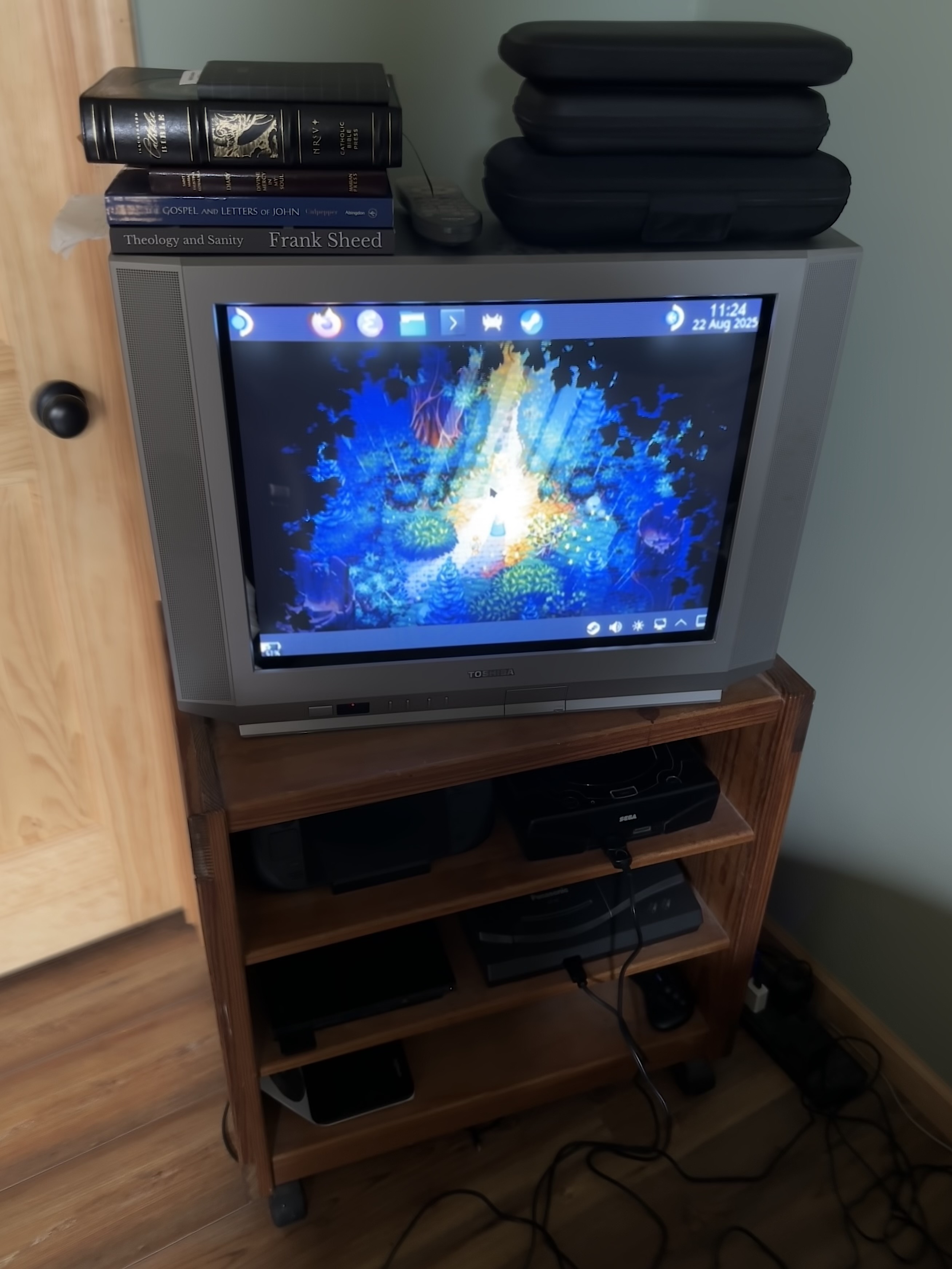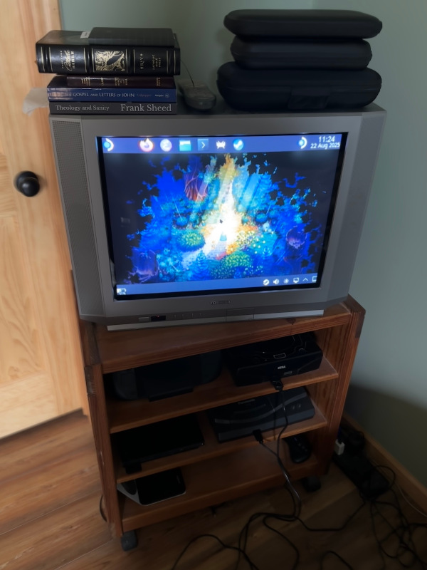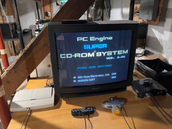 This is the second CRT TV setup, with a heavily-modded NEC PC Engine Duo-R and a Nintendo 64 with an Everdrive cartridge setup.